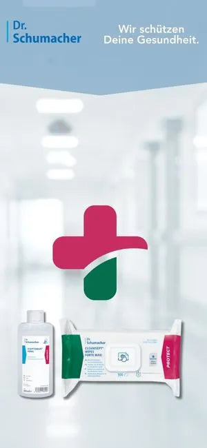 Among the most popular items are the Dr. Schumacher Descosoft Sensitive Wipes, which provide mild yet thorough surface disinfection, the Dr. Schumacher Aseptoman Hand Disinfectant, which reliably protects against germs, and the Dr. Schumacher Cleanisept Wipes, which allow for quick disinfection without residues. These three products illustrate the brand's holistic hygiene concept – effective, skin-friendly, and suitable for everyday use.