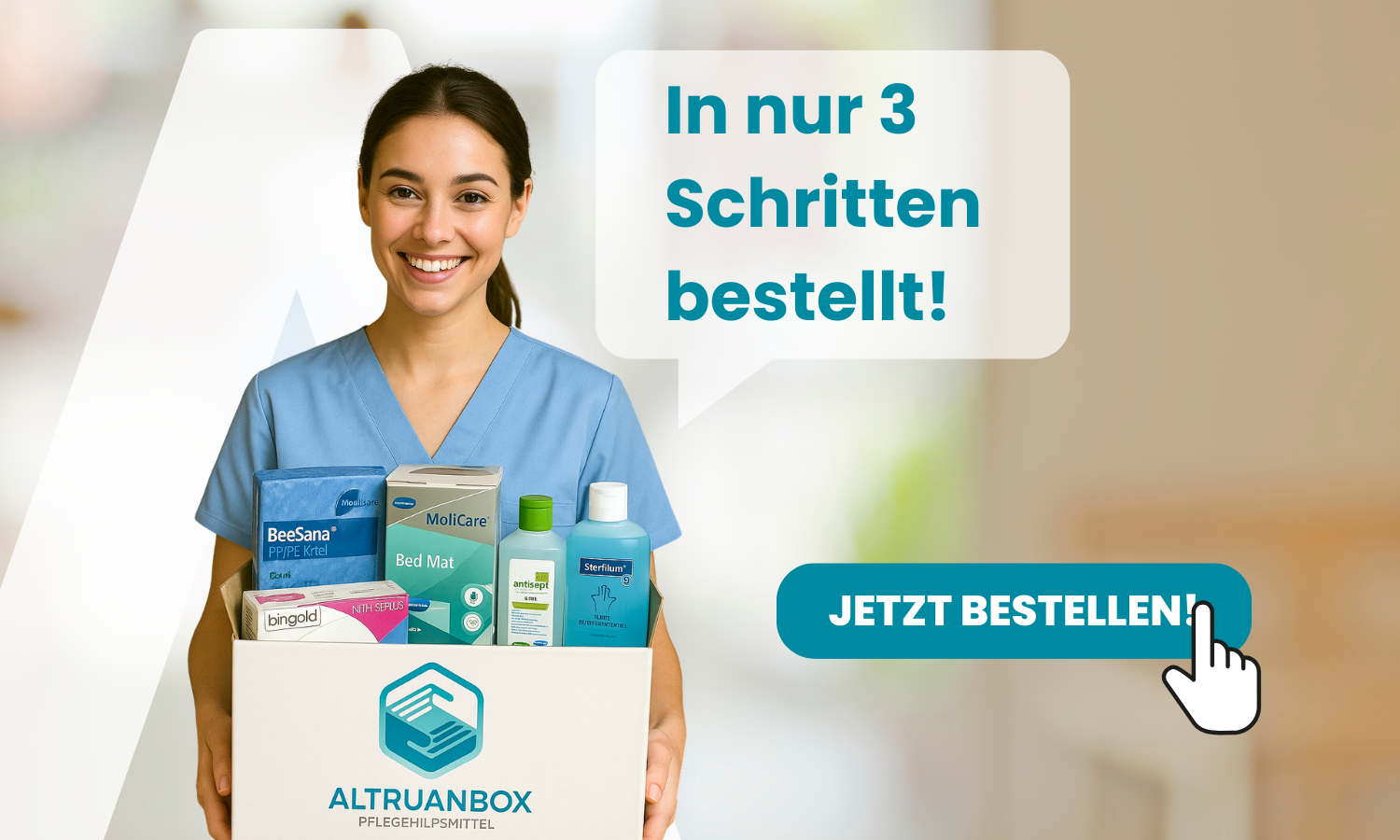 On the AltruanBox page, you will be guided step by step through the online application. After you have assembled the care aid box and filled out the application online, we take care of the rest and the billing with your care fund.